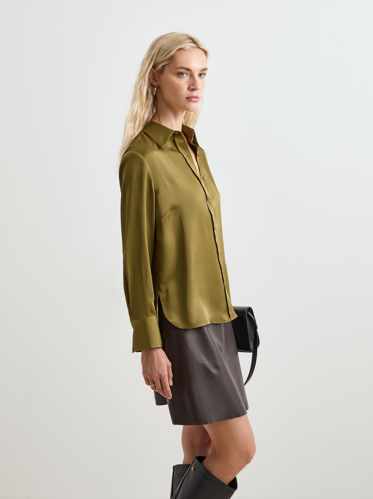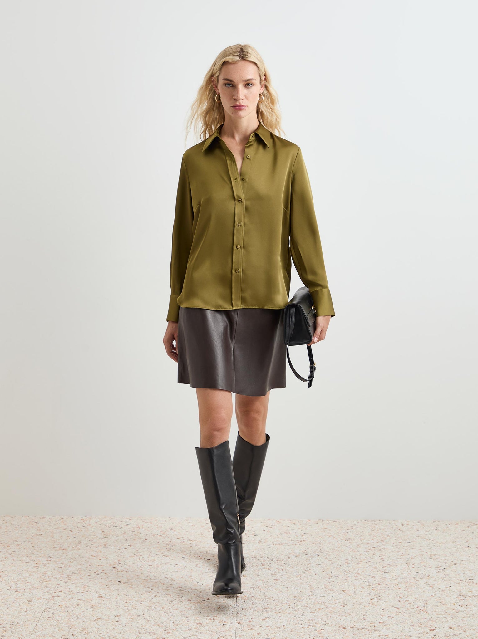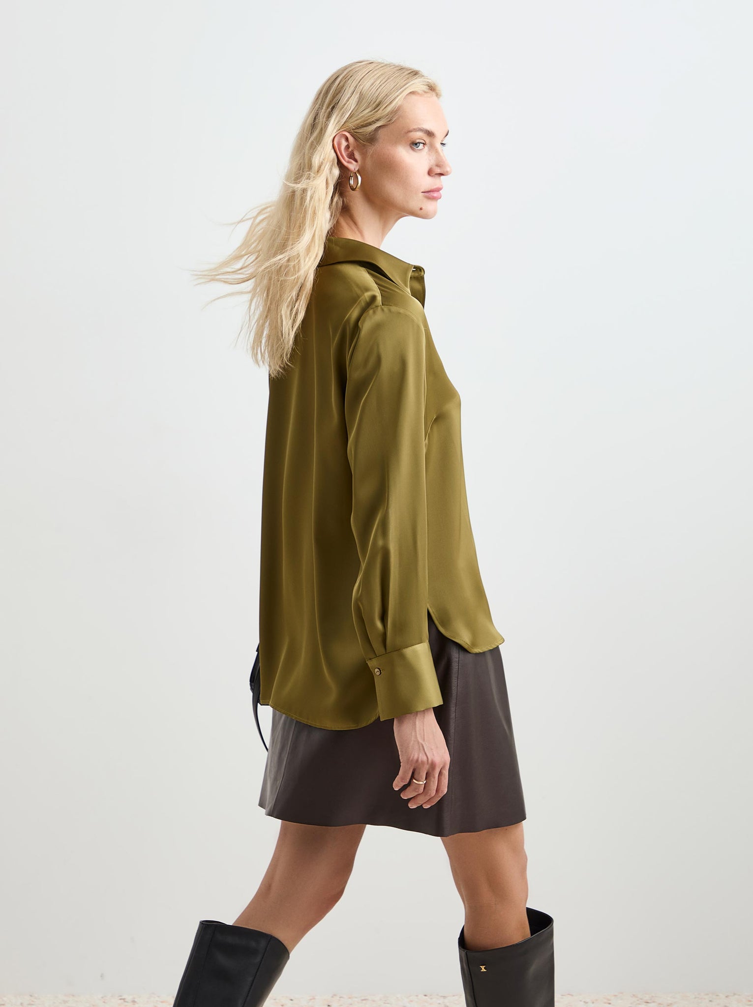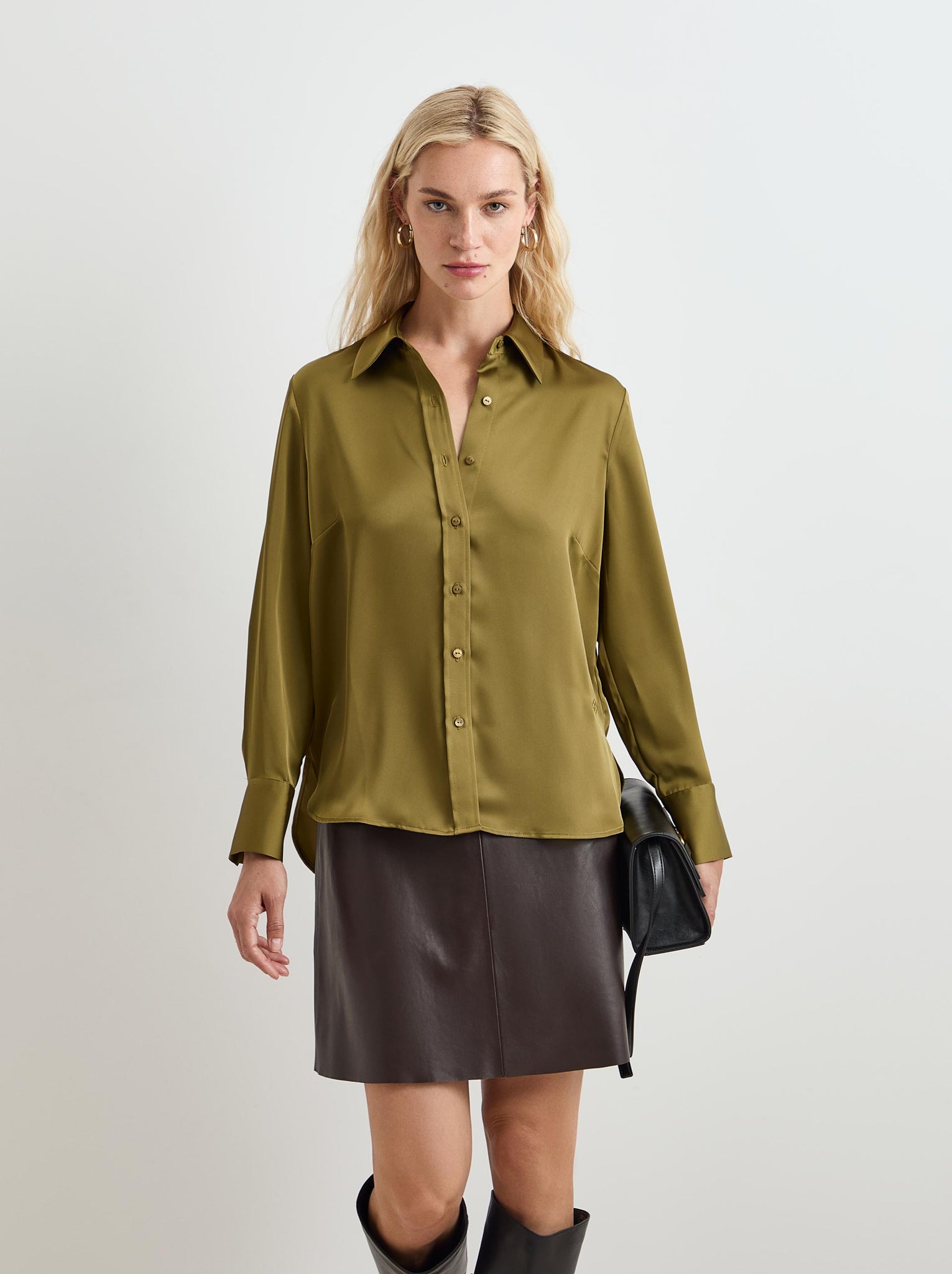 Esta camisa fluida acetinada é um básico indispensável no guarda-roupa feminino.