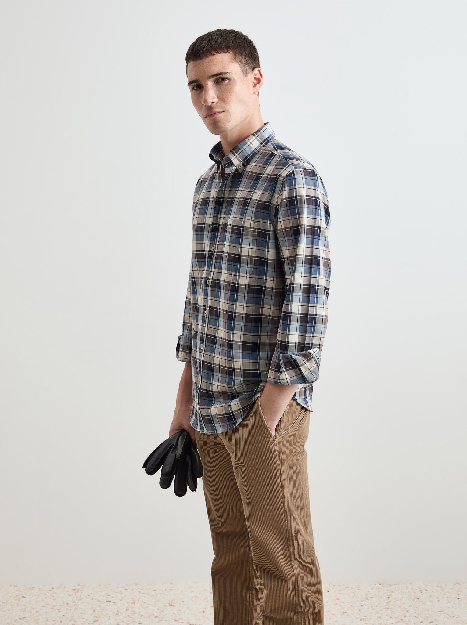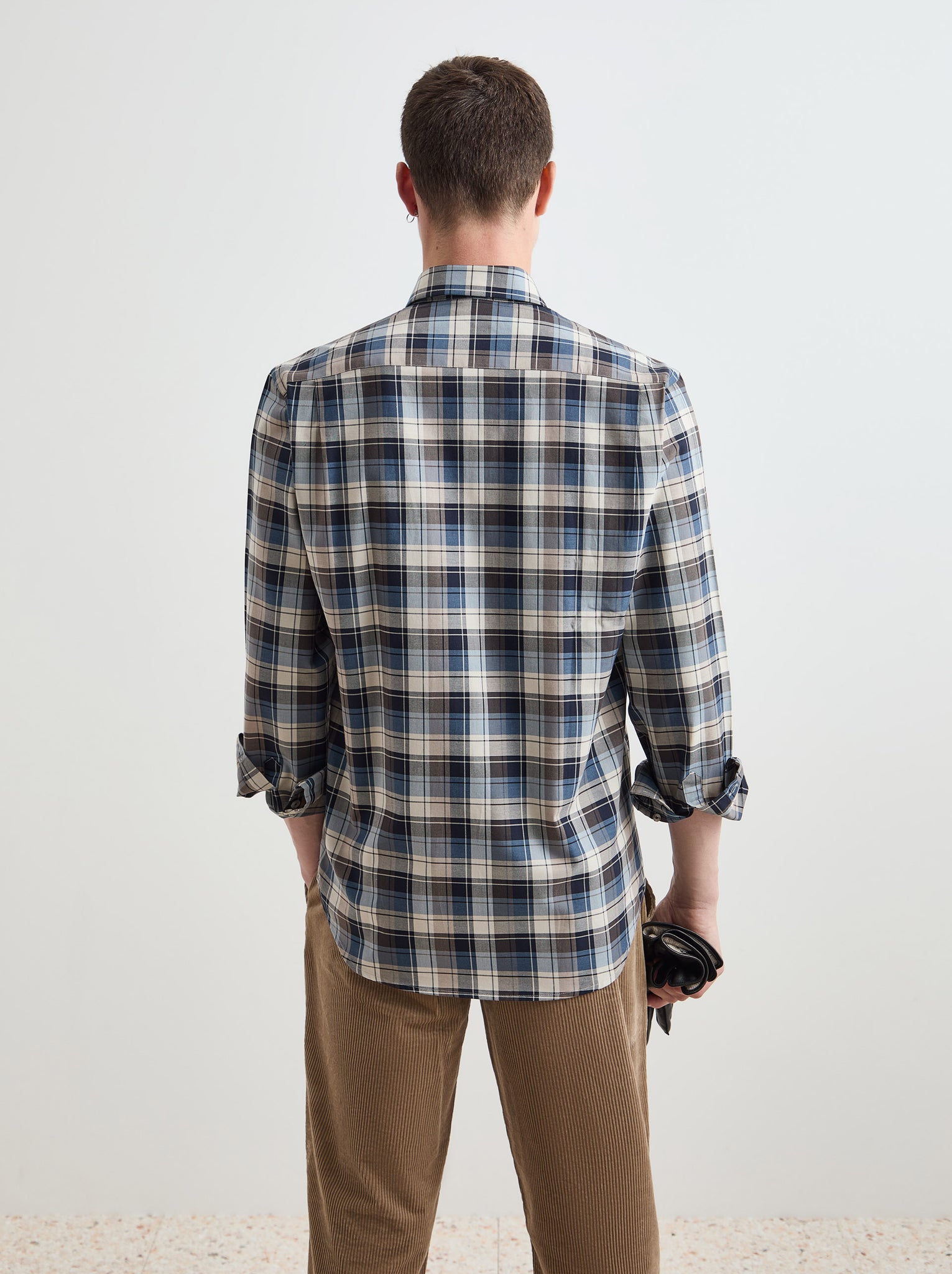 Camisa regular fit com padrão aos quadrados em contraste de cor.