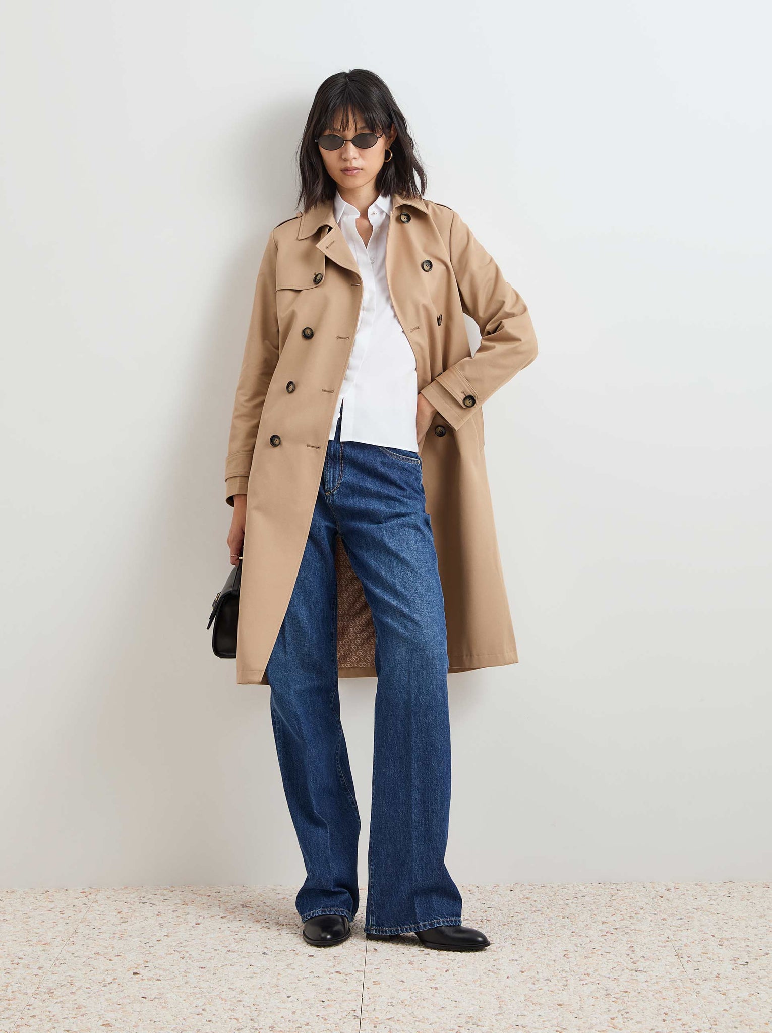 Gabardine elegante com repelência à água, ideal para dias de chuva sem comprometer a elegância.