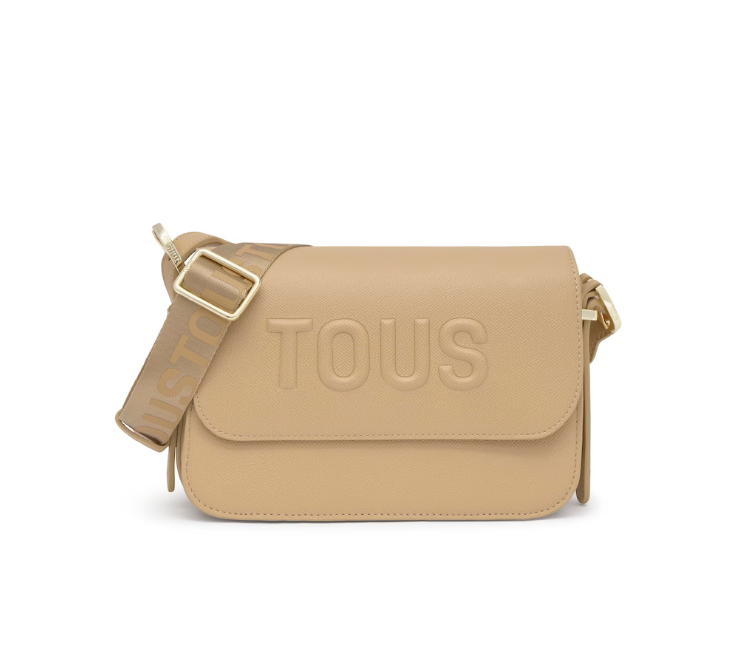Mala de tiracolo média TOUS Brenda em poliuretano na cor areia.