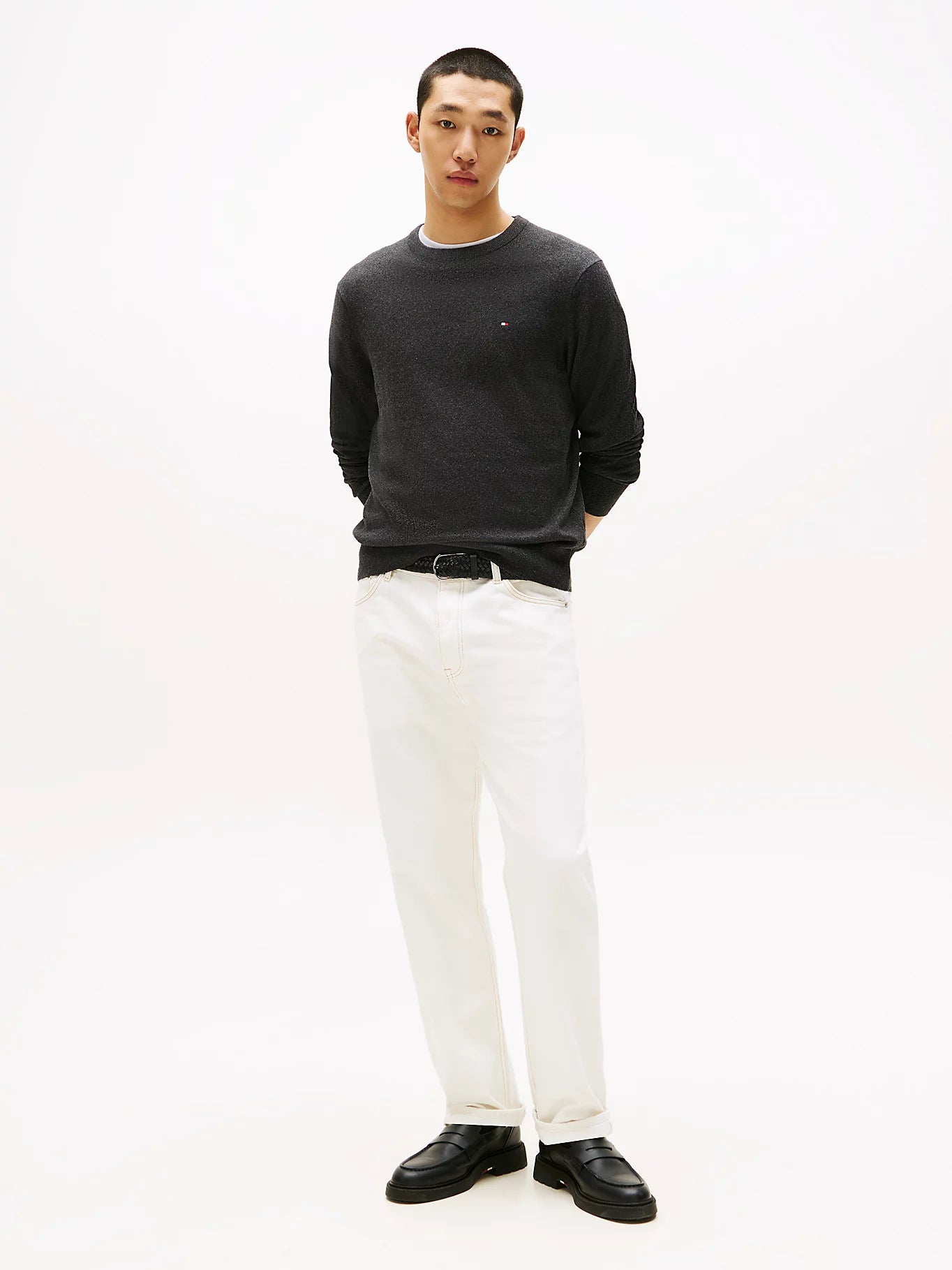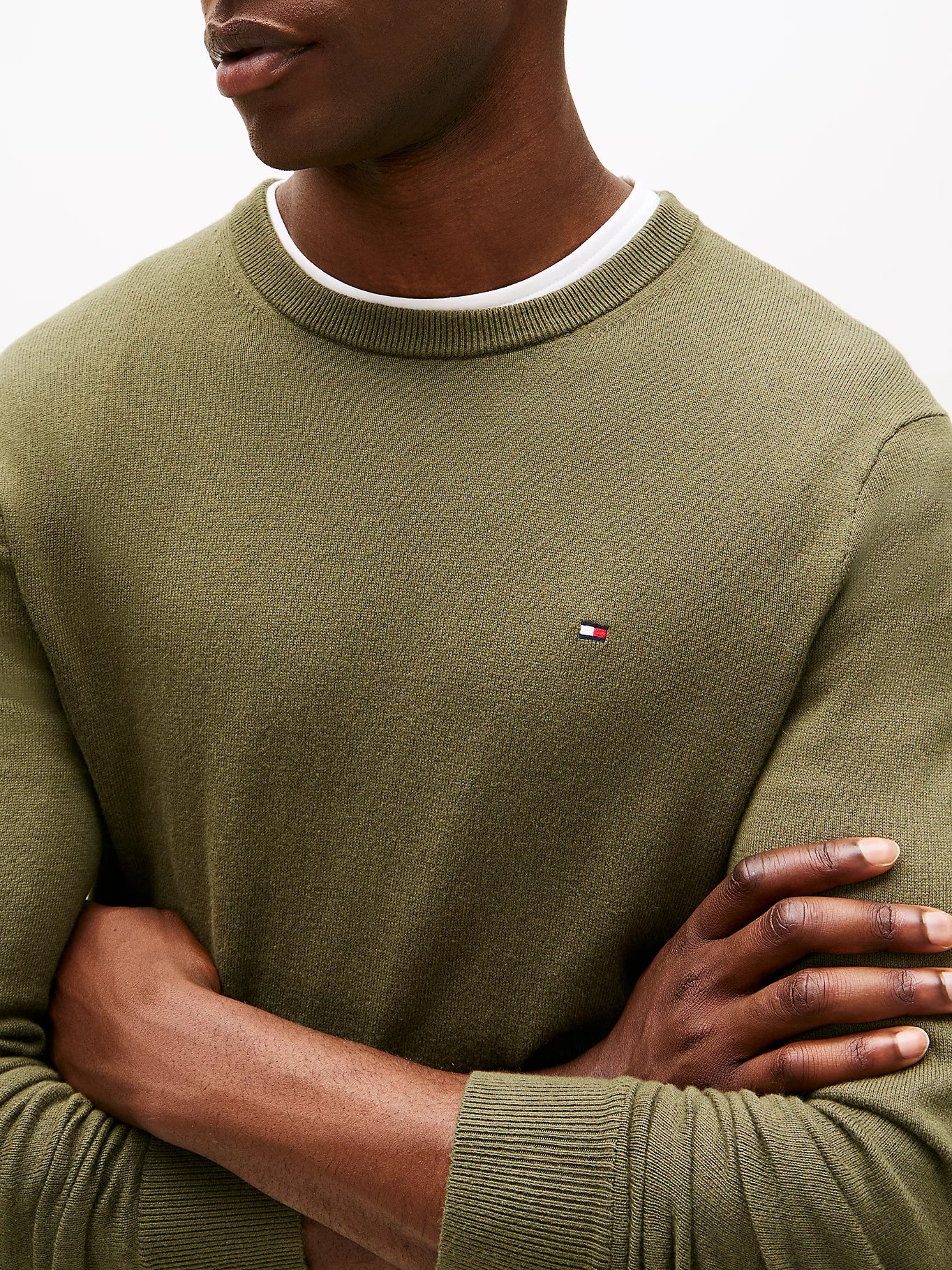 Bandeira Tommy Hilfiger bordada no peito.
