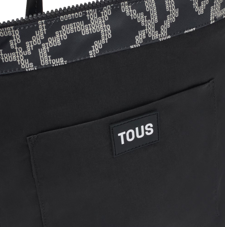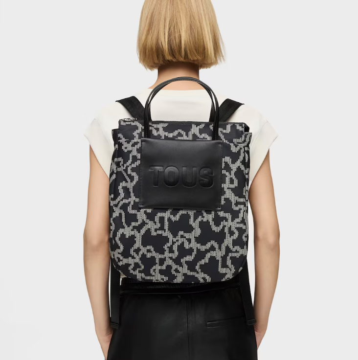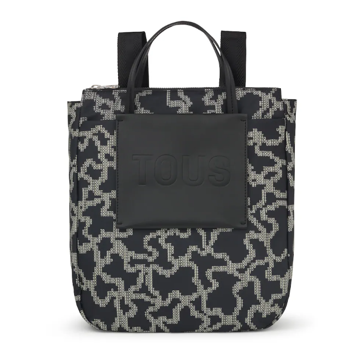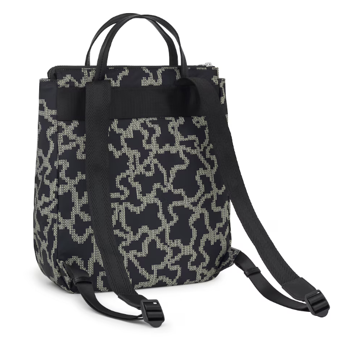 Mochila TOUS Kaos Pix Soft em poliéster reciclado com estampado na cor preta e bege.