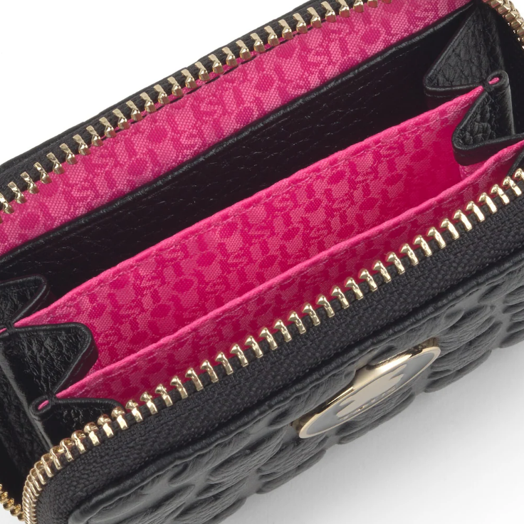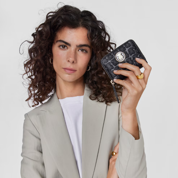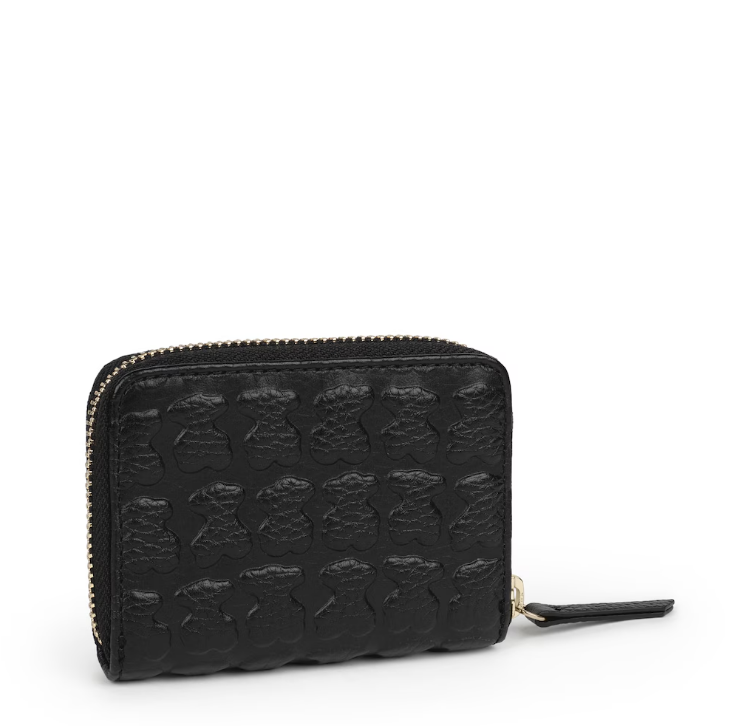 Porta-moedas médio TOUS coleção Sherton em pele gravada na cor Preta.