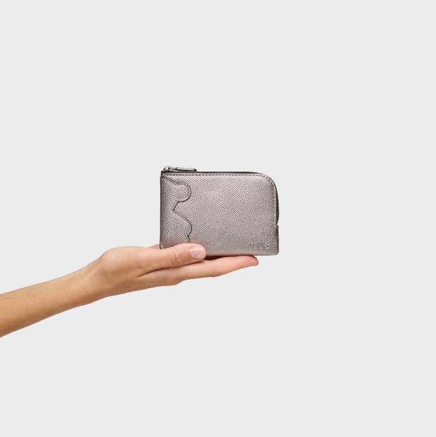 Porta-moedas TOUS Bear Anniversary em poliuretano prateado.